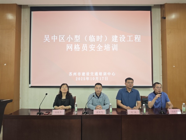 10月17日,由苏州市吴中区住房和城乡建设局主办、我校承办的吴中区小型(临时)建设工程网格员安全培训在尹山湖校区顺利举行。本次培训共计300名网格员参加,分上、下午两个批次开展,旨在全面提升辖区内小型(临时)建设工程网格员的安全监管能力与应急处置水平,筑牢基层建设安全防线。